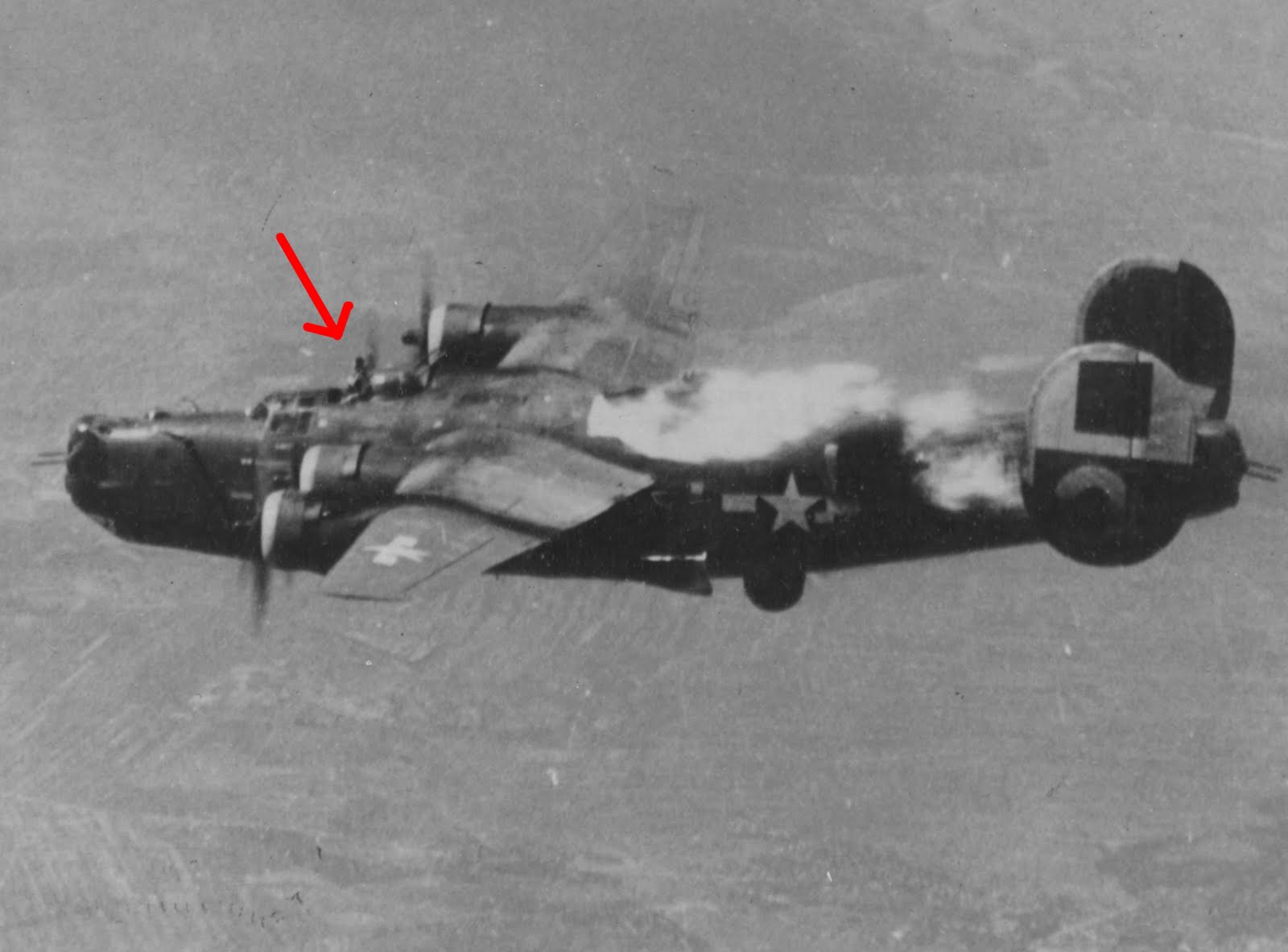 I keď fotografie formácií bombardérov zväčša vyzerajú monotónne a opakujúco sa, je niekoľko fotografií, ktoré vystupujú z radu a ukazujú osudové okamihy. Jednou z takých je aj fotografia vyhotovená dňa 16.6.1944 počas náletu na rafinériu v Lobau neďaleko Viedne.